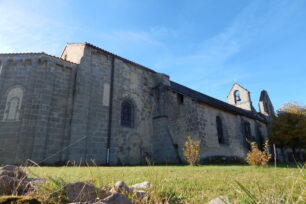 Située sur le plateau de Millevaches, l’église comporte une abside voûtée à cinq pans avec colonnes engagées à l’extérieur, partie remontant à la fin du XIIe siècle. La nef, très allongée, se compose de quatre travées irrégulières, et a été remaniée au XVIe siècle. Deux chapelles furent ajoutées au XVIIe siècle, de chaque côté de la travée vers le choeur. A une période indéterminée, sans doute au XIIIe siècle, un clocher-mur fut construit perpendiculairement à la façade et contient trois arcades pour cloches, particularité curieuse qui semble destinée à protéger l’entrée contre les intempéries. Le grand pignon composant la façade d’entrée présente les caractères régionaux du XVIe siècle. Il est percé d’une porte d’entrée à rouleaux reposant sur des colonnettes. La partie supérieure se termine en forme de clocheton.