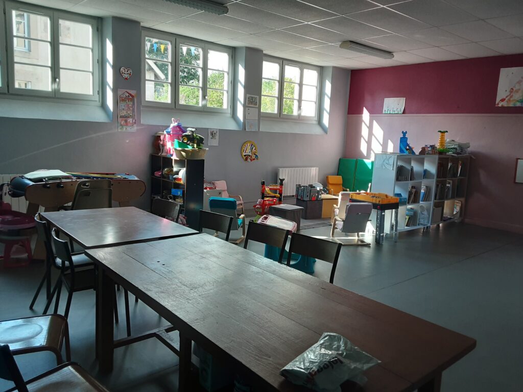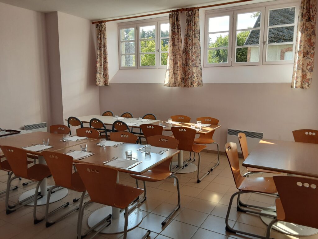 Les repas sont pris à la cantine, sur du mobilier adapté dans un cadre familial.